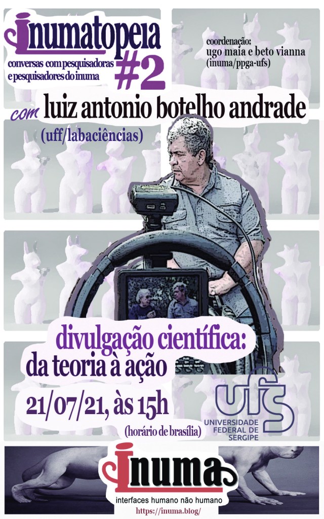 Inumatopeia é um ciclo de conversas com as pesquisadoras e pesquisadores do Inuma. Na segunda edição vamos conversar com o biólogo, cineasta, pesquisador e professor da Universidade Federal Fluminense (UFF), Luiz Antonio Botelho Andrade, com o tema “Divulgação científica: da teoria à ação”.
